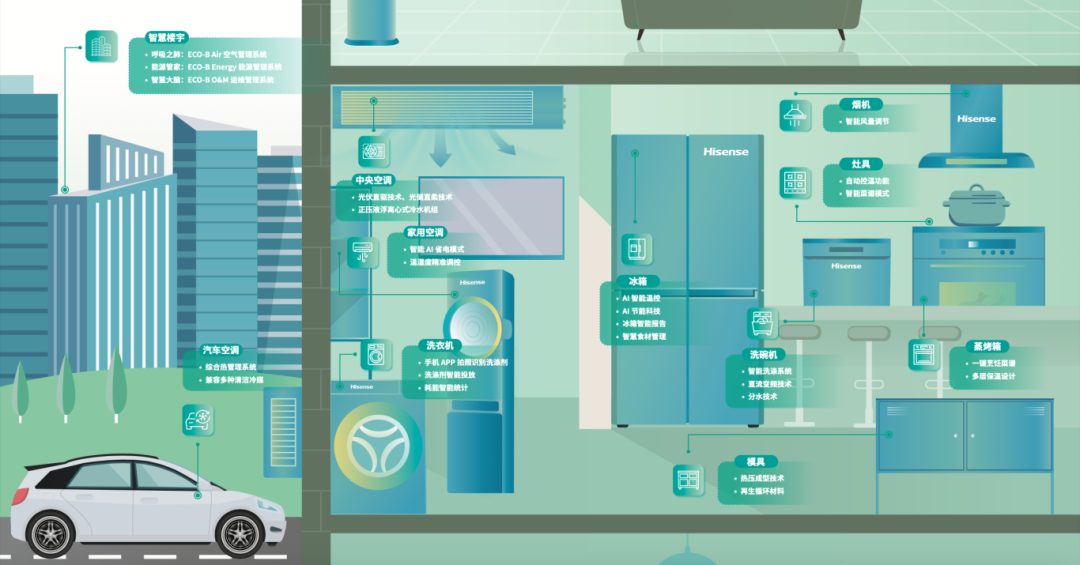坚持绿色低碳发展,海信家电响应智能化与低碳化趋势,运用AI技术拓展场景化产品生态,打造节能环保、健康安全、智能互联领域的差异化产品矩阵,致力于让AI技术革命与可持续发展目标同频共振。持续推出全场景低碳产品与解决方案,打造舒适、便捷且环保的生活场景,国内一级能耗产品占比达79%;政企业务领域,海信家电拓展智慧建筑、能源管理等产业,ECO-B智慧楼宇提供全生命周期的管理与运维服务,有效降低能耗30%,为城市绿色发展贡献力量。